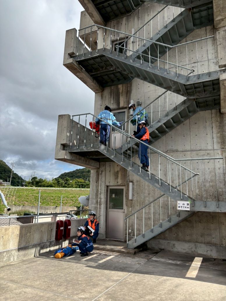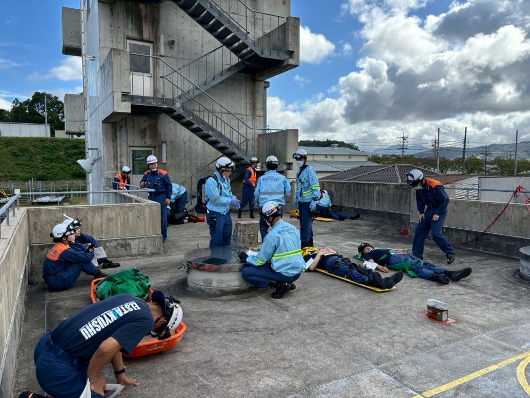 想定内容は、山林で蜂刺傷による多数傷病者事案を想定し、訓練棟を山林と見立てて雲南消防署、奥出雲消防署から出動し活動するというものでした。飯南消防署職員が傷病者役と評価者となり、指導救命士とともに訓練の評価を行いました。訓練の検証を行い、多数傷病者発生時には適切な活動が出来るよう、さらに訓練を重ねていきます。